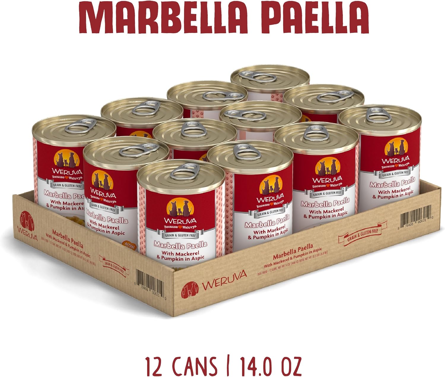 Weruva Classic Dog Food, Marbella Paella with Mackerel & Pumpkin in Aspic, 14oz Can (Pack of 12)