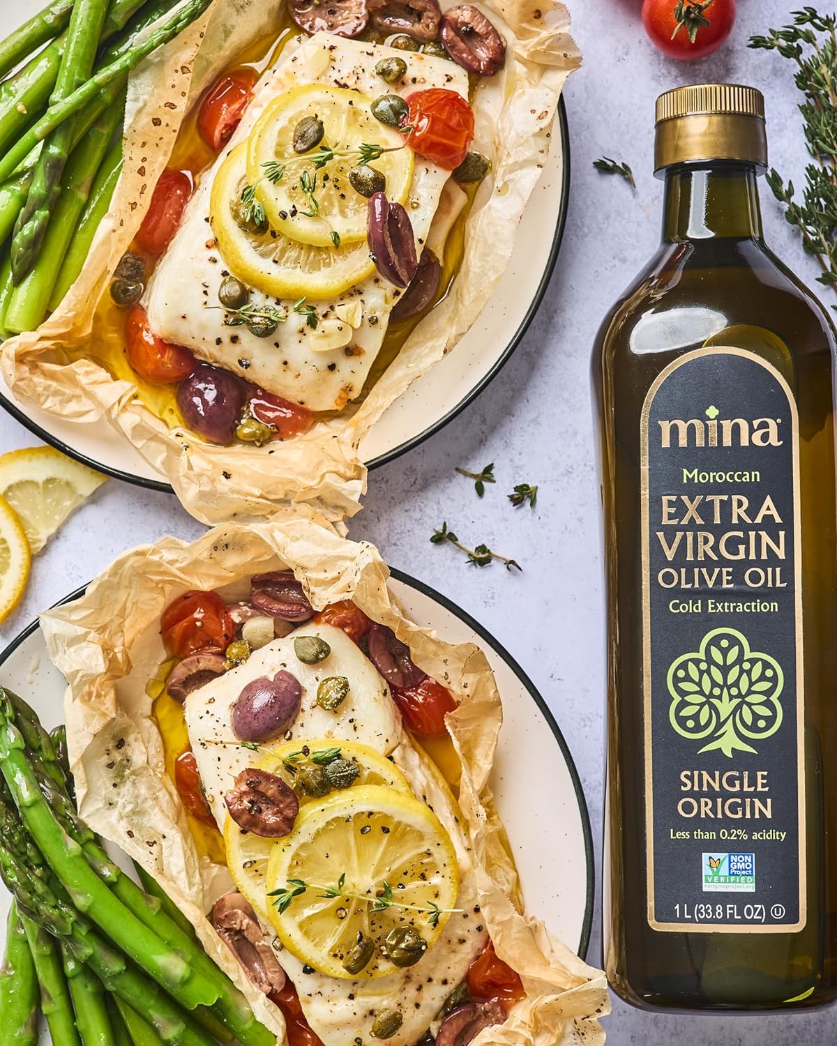 Mina Olive Oil Extra Virgin 33.8 Fl Oz, New Harvest, Polyphenol Rich Olive Oil for Cooking, Moroccan Extra Virgin Olive Oil, Single Origin Olive Oil, Cold Extraction, Less than 0.2% Acidity, 1 L