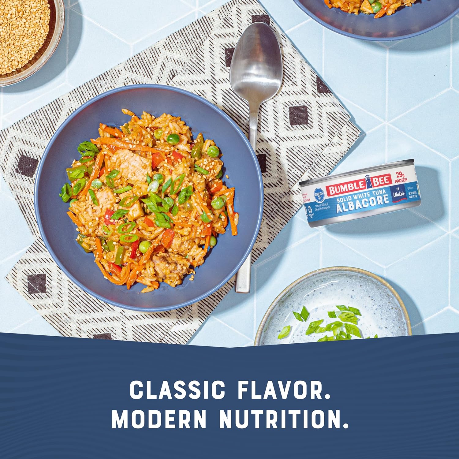 Bumble Bee Solid White Albacore Tuna in Water, 5 oz Can (Pack of 24) - Wild Caught Tuna - 29g Protein per Serving, High in Omega-3s - Non-GMO Project Verified, Gluten Free, Kosher