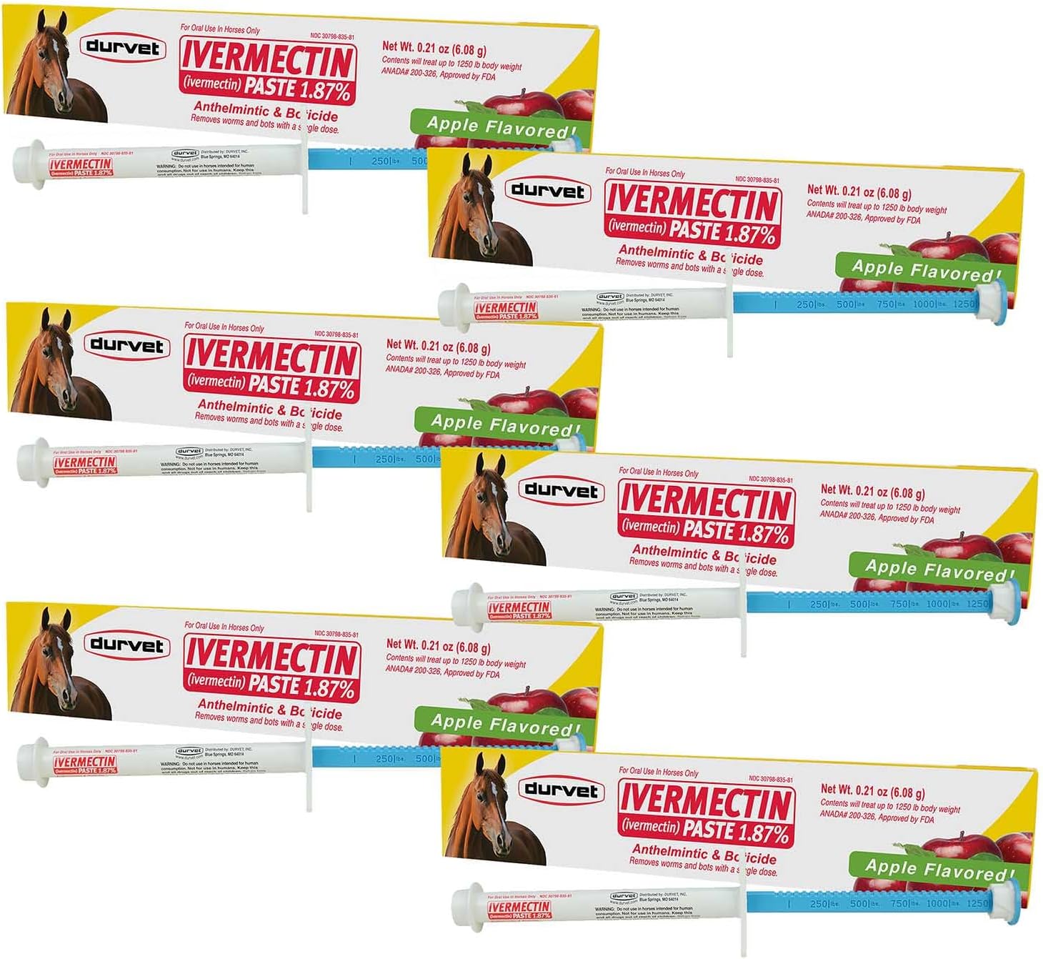 Durvet Ivermectin Paste Dewormer - 6.08g dose @ 1.87% Apple Flavor (6-Pack)
