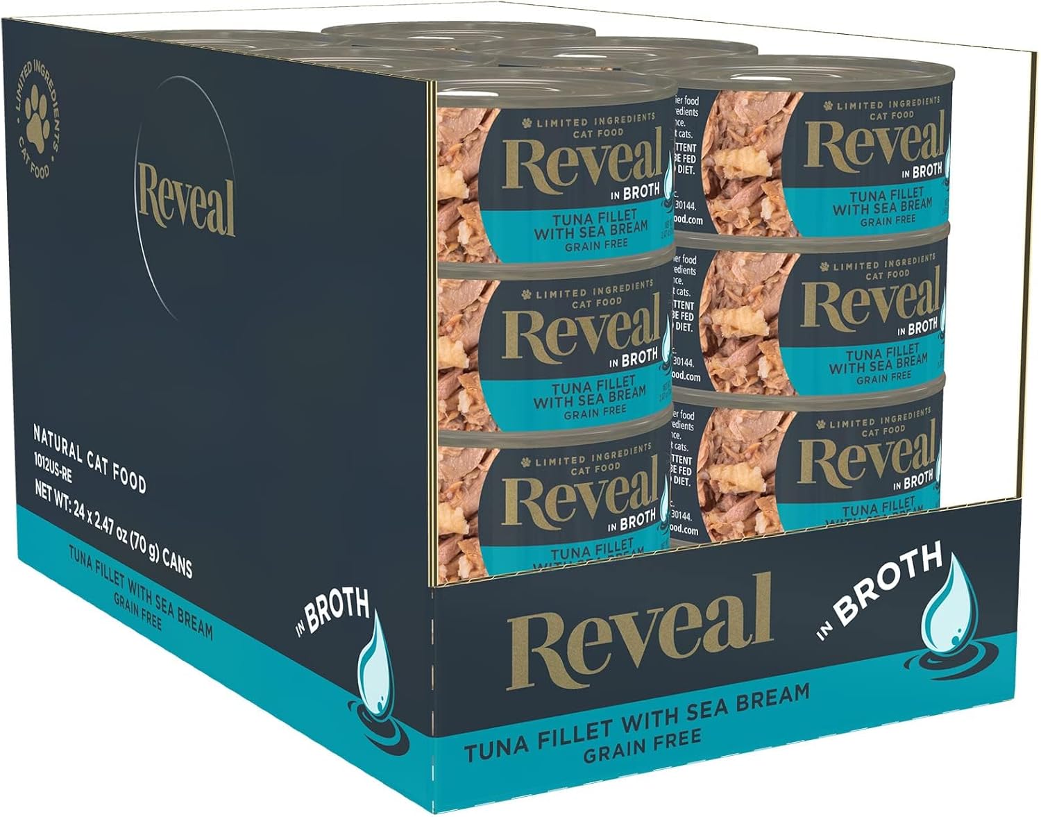 Reveal Natural Wet Cat Food, 24 Count, Grain Free, Limited Ingredient Canned Food for Cats, Tuna with Sea Bream in Broth, 2.47 oz Cans