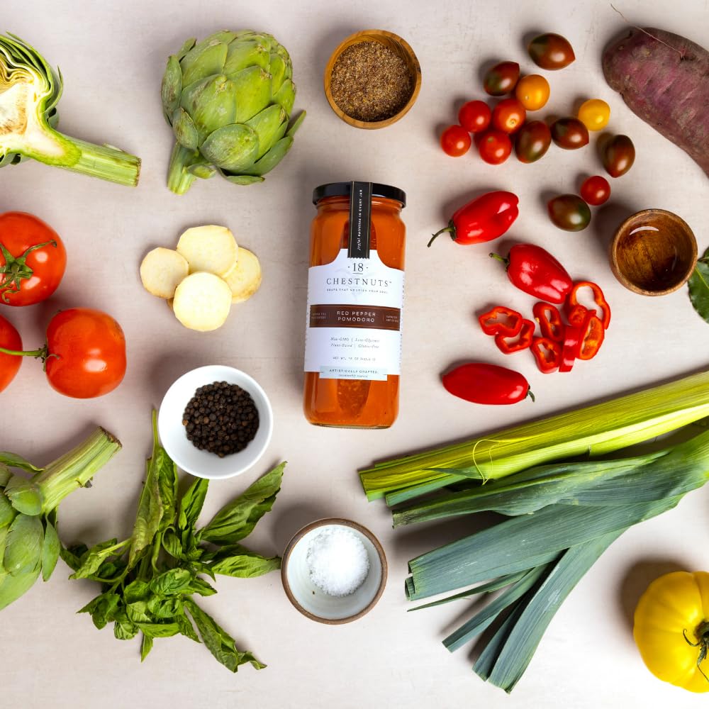 18 Chestnuts Plant Based Soup - Tuscan Tomato, Plant Based, Low Fat and Low Calorie & Gluten Free Soup - 3 Jar Pack (16oz)