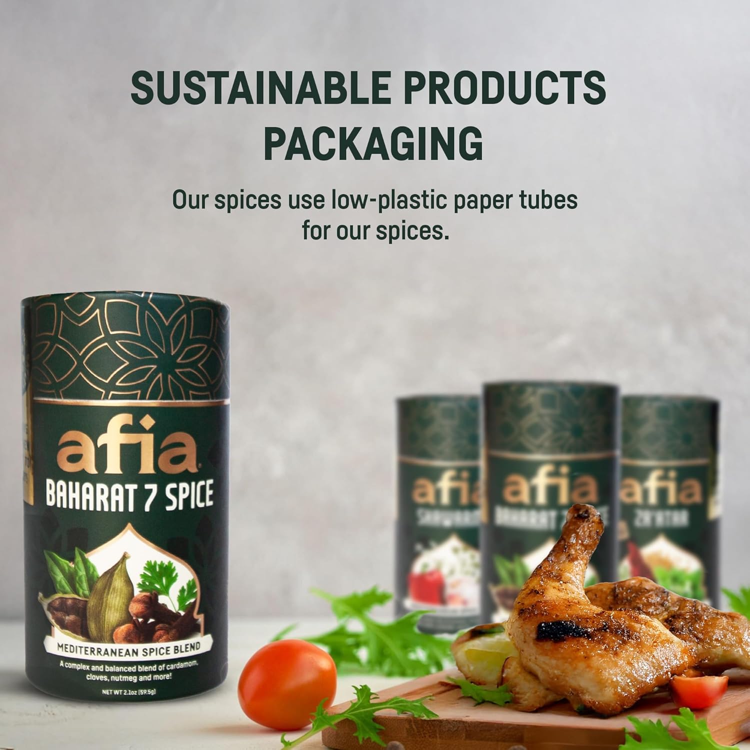 Afia - Baharat Spice Blend | Baharat 7 Spice Mix for Kofta, Kebab, Grilled Meat Seasoning | Premium Seasoning with Top Notes of Cinnamon and Clove (1pk, 2.1oz)