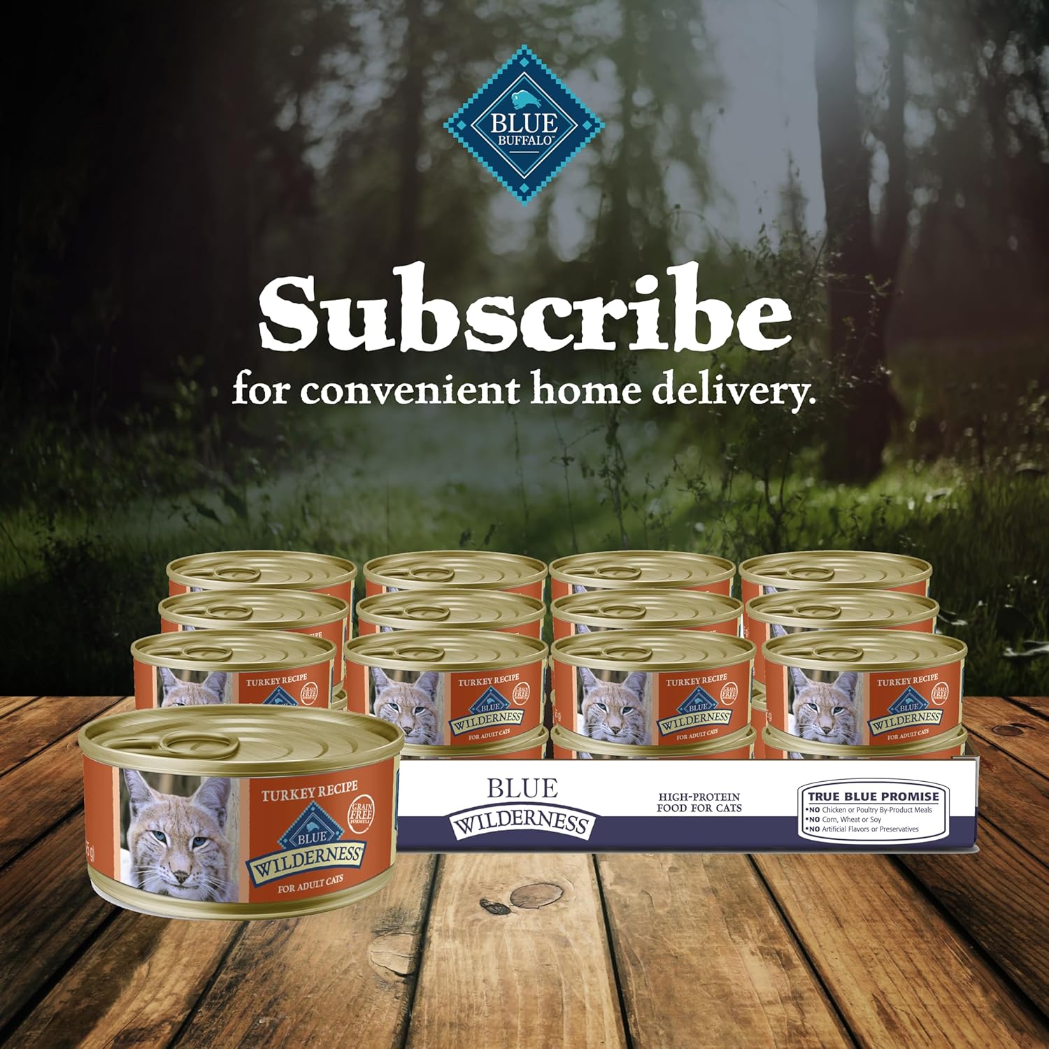Blue Buffalo Wilderness Natural High-Protein Grain-Free Wet Food for Adult Cats, Turkey Paté, 5.5-oz. Cans, 24 Count