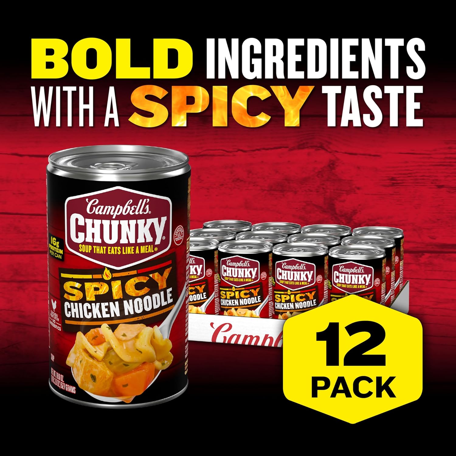 Campbell's Chunky Soup, Spicy Chicken Noodle Soup, 18.6 oz Can (Case of 12)
