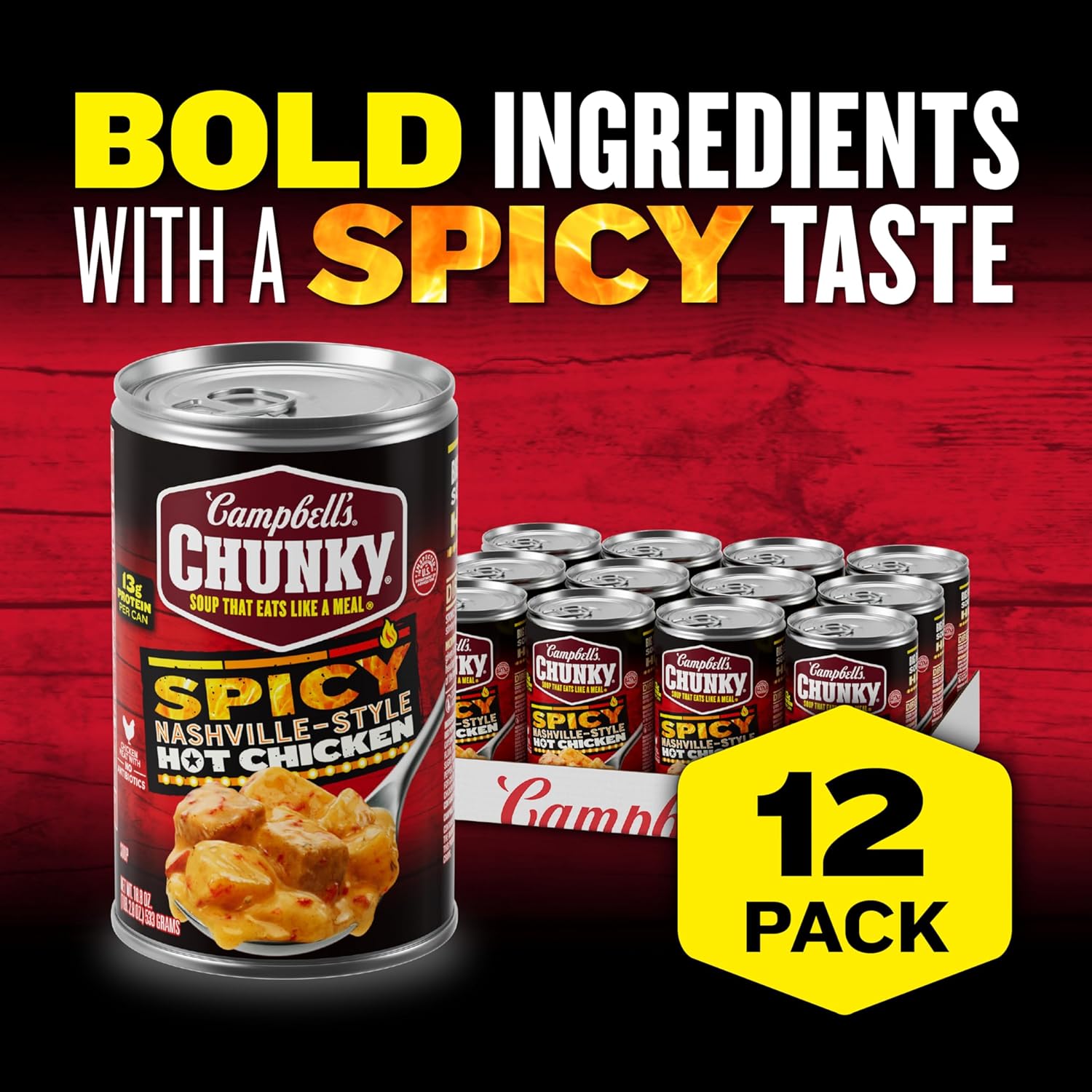 Campbell’s Chunky Soup, Spicy Nashville-Style Hot Chicken Soup, 18.8 oz Can (Pack of 12)