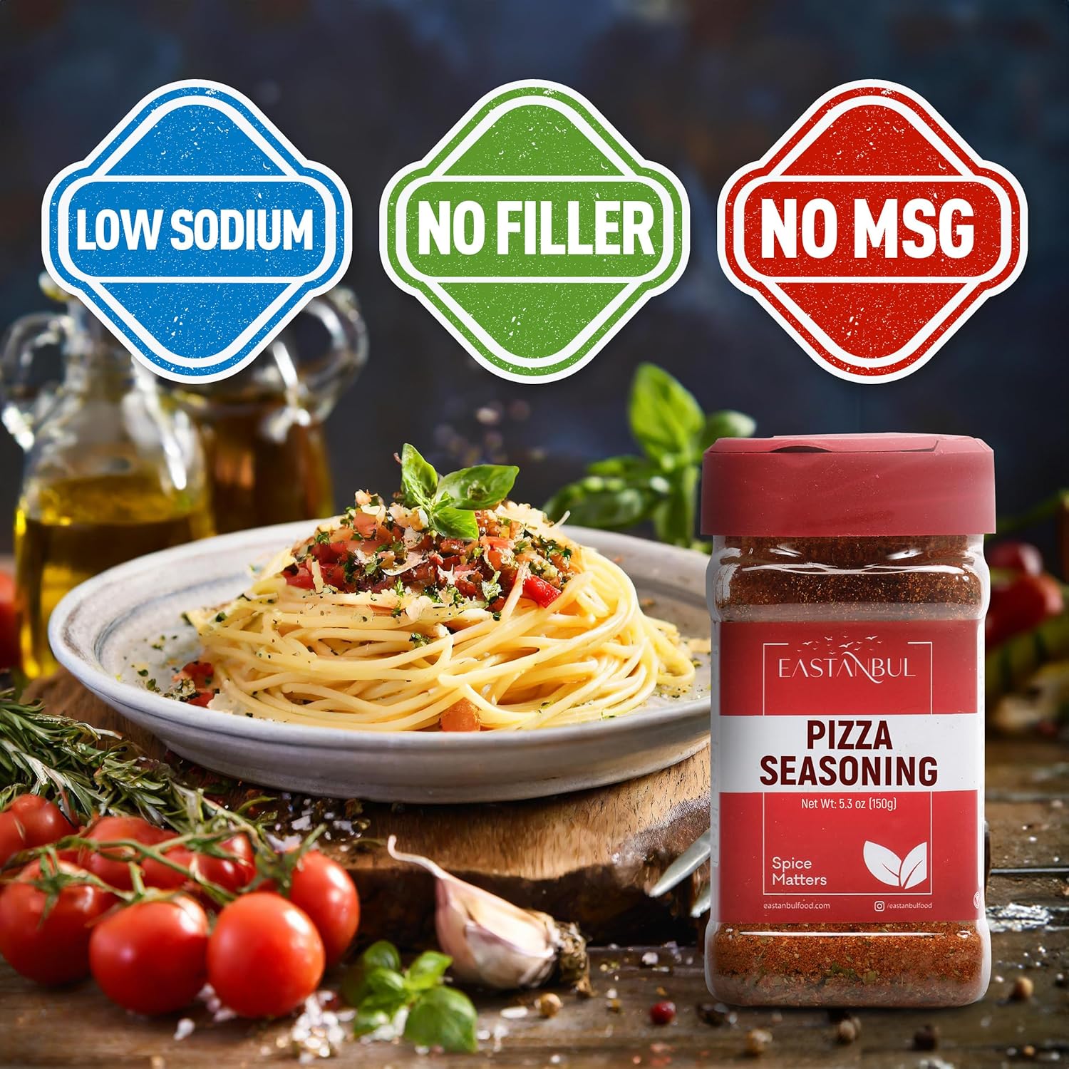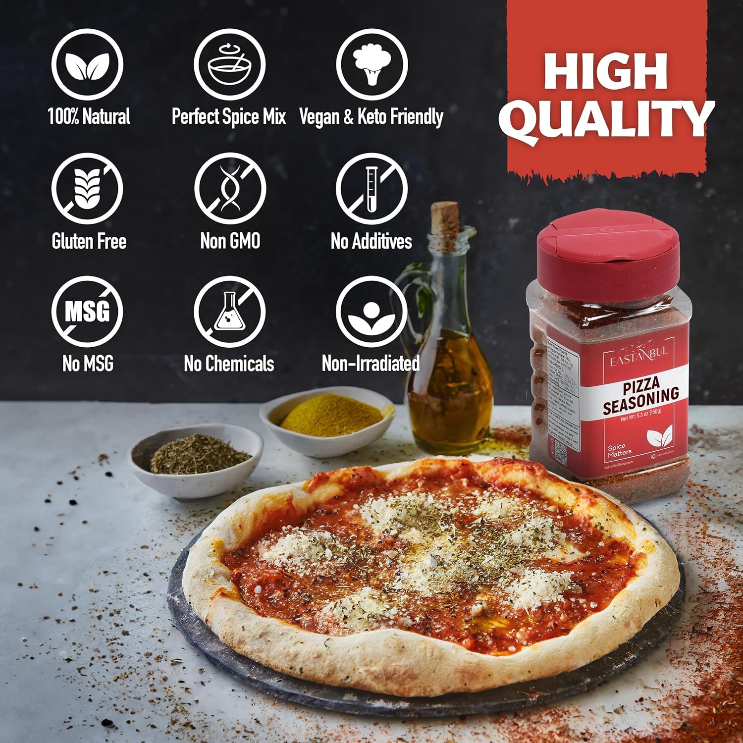 Eastanbul Pizza Seasoning Spice Blend, 5.29oz Italian Seasoning, Boosts Pizza Toppings, Herbal Blend, Popcorn Spice, Low Sodium, No MSG, No Filler, Vegan