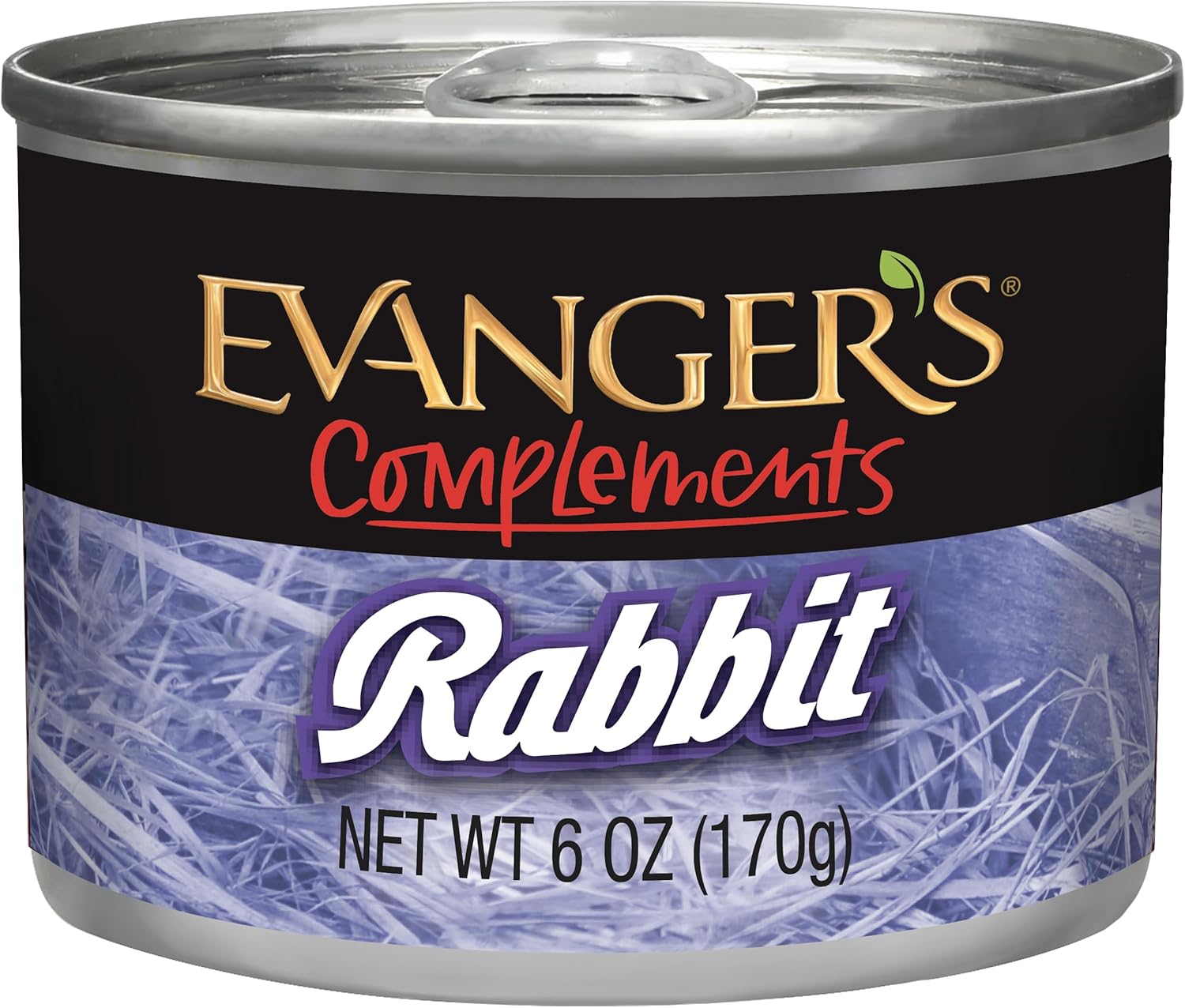 Evanger's Complements Rabbit for Dogs & Cats – 24 Count, 6 oz Each – Single-Protein Formula Cooked in Broth – Grain & Gluten Free – Wet Dog & Cat Food
