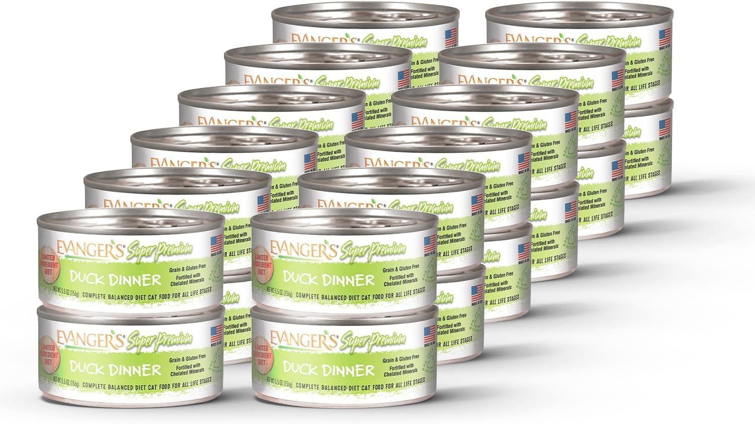 Evanger's Super Duck Dinner for Cats – 24 Count, 5.5 oz Each – Grain & Gluten Free, Chelated Minerals, Exotic Protein, Hypoallergenic, Loaf Style