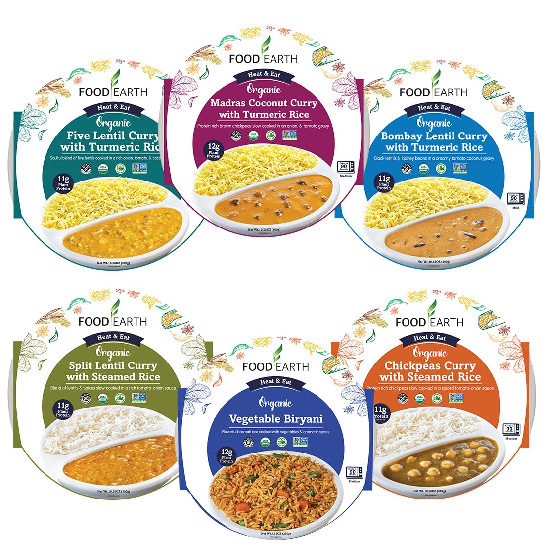 Food Earth Ready to Eat Indian Meals – Six Flavor Variety Pack – Organic, Microwavable, Premade & Quick – Lunch & Dinner Pack (6 Pack)