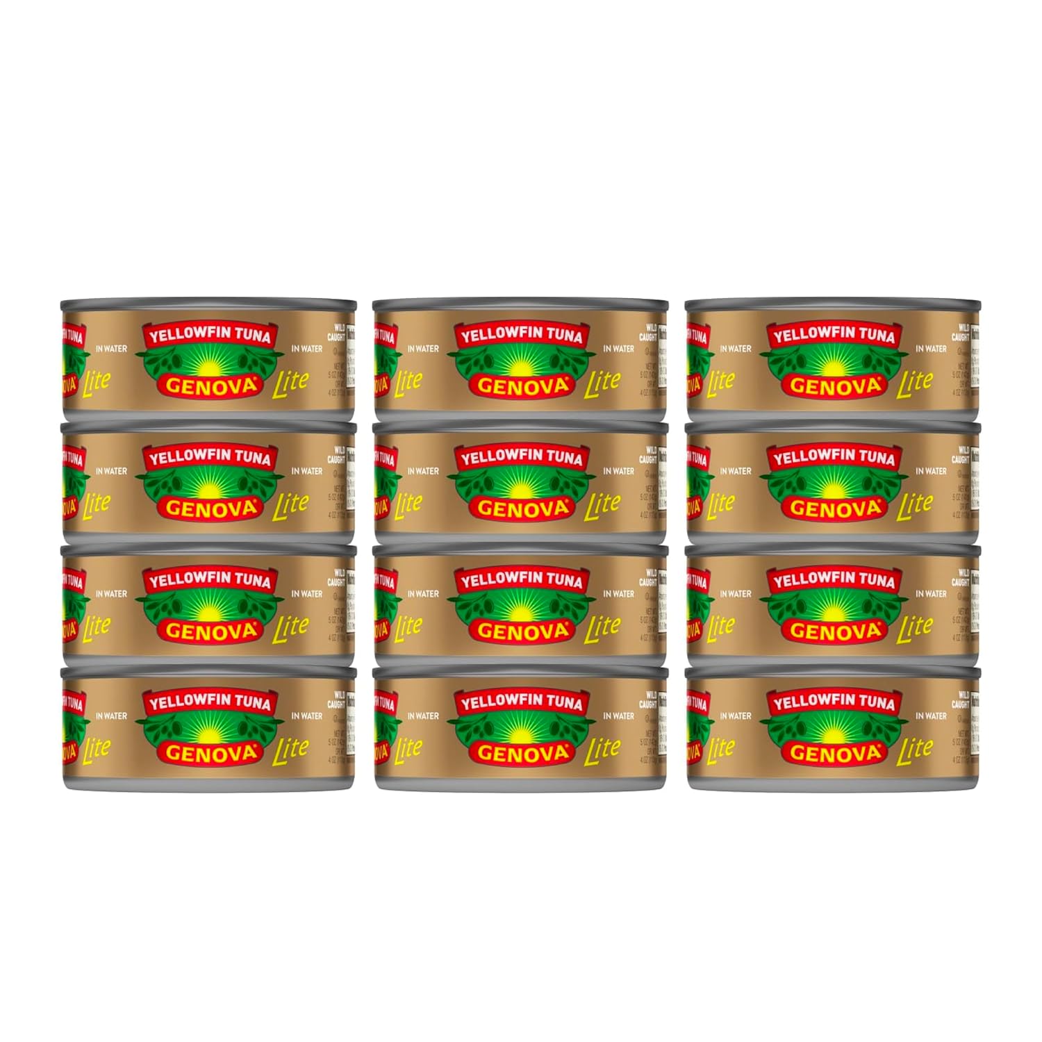 Genova Premium Lite Yellowfin Tuna in Water, Wild Caught, Solid Light, 5 oz. Can (Pack of 12)