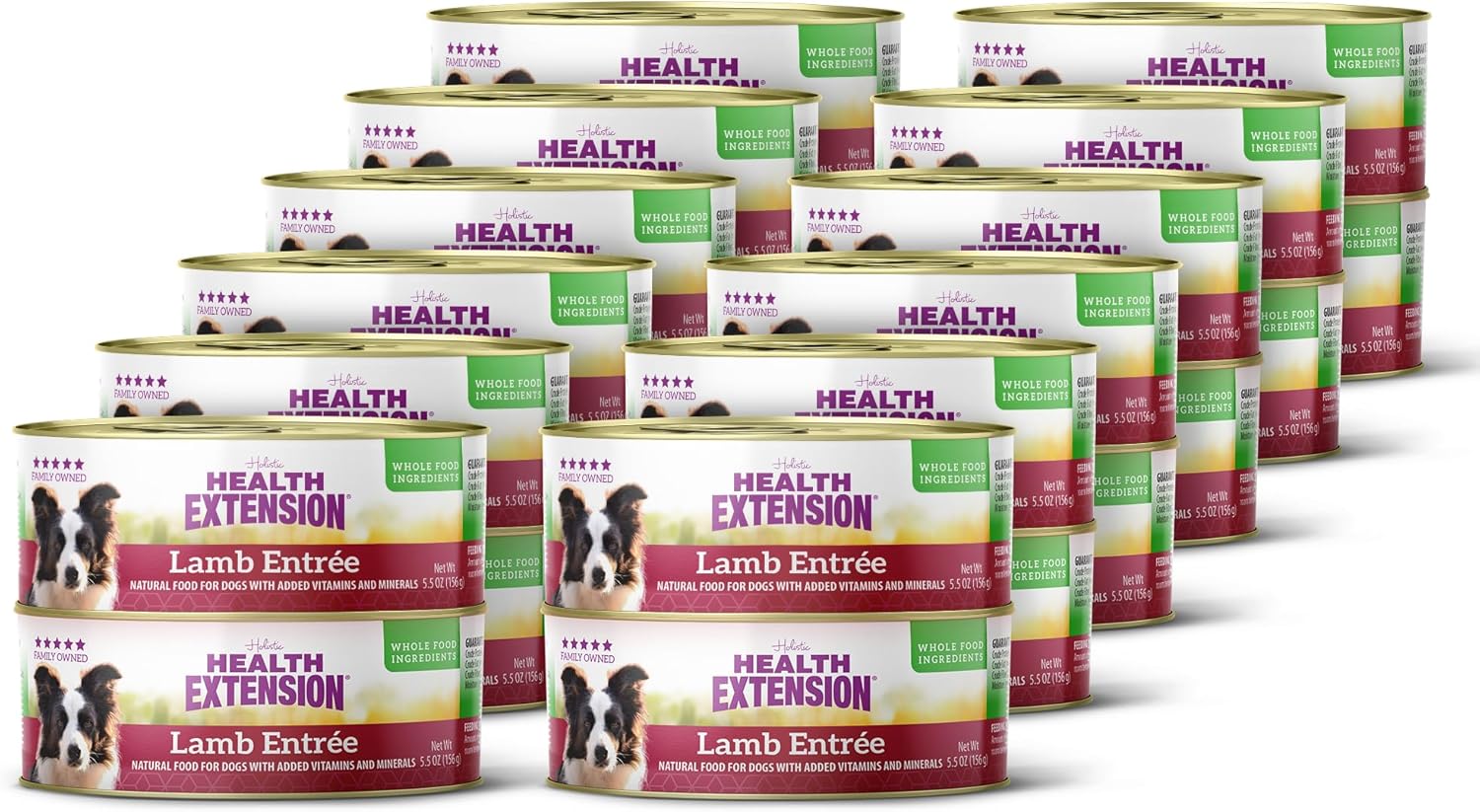 Health Extension Wet Dog Food Canned, Natural Food for All Puppies & Dogs with Added Vitamins & Mineral, Lamb Entree (5.5 Oz / 156 g) (Pack of 24)