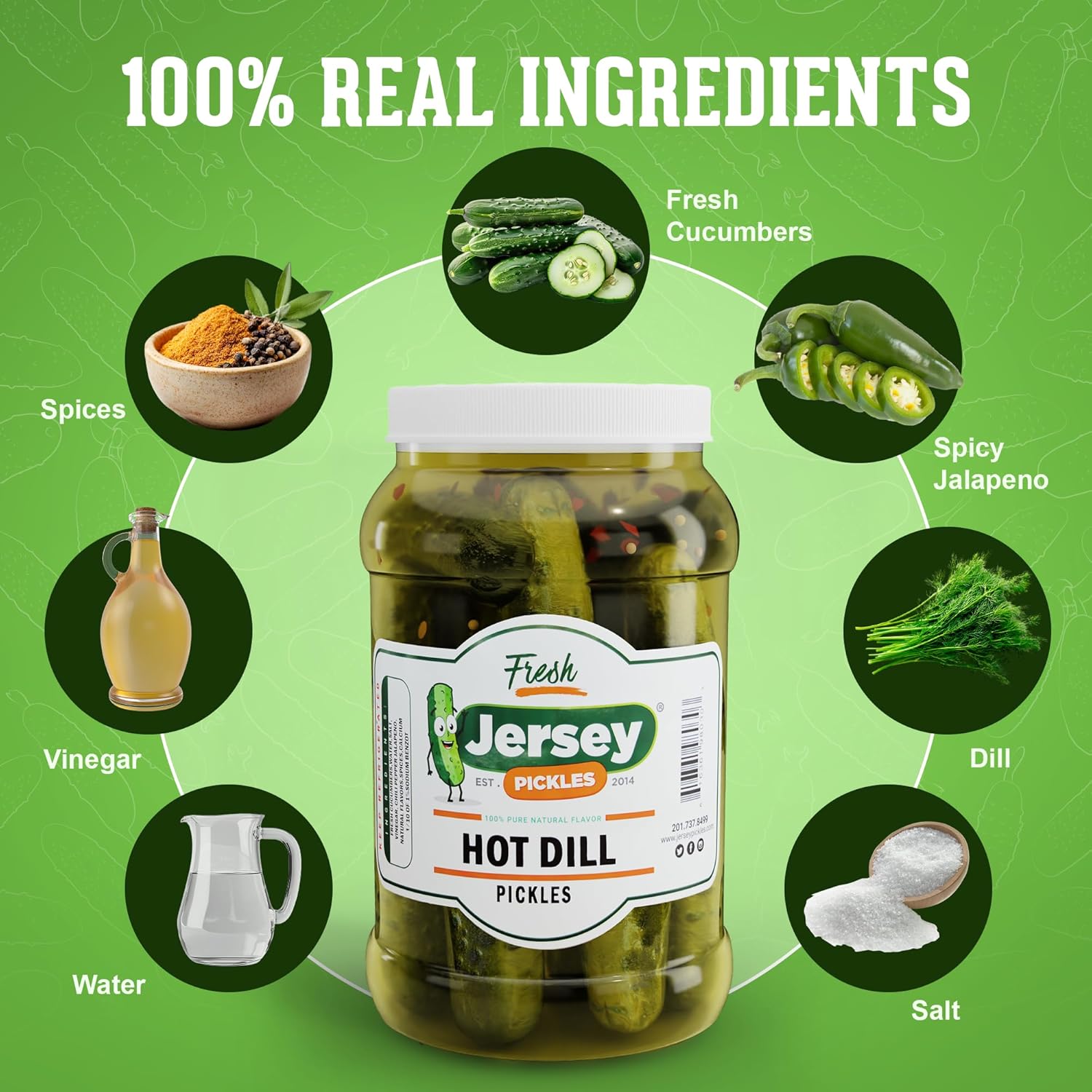 Jersey Pickles - Hot Dill (Gallon) - Fresh, Keto-Friendly, and Perfect for Snacks, Sandwiches, or Salads – The perfect Pickle Jars Cornichon for Families or Gatherings