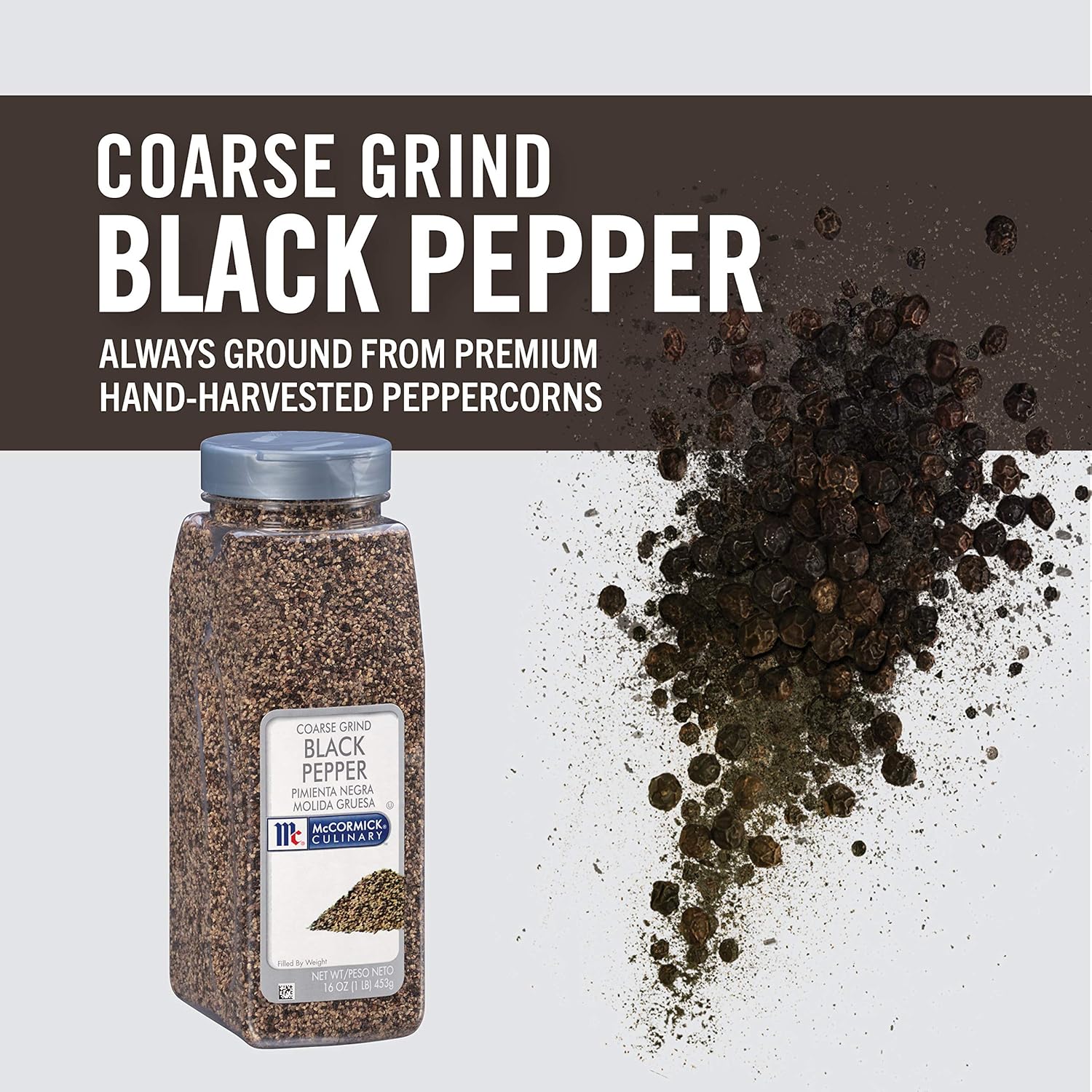 McCormick Culinary Coarse Grind Black Pepper, 16 oz - One 16 Ounce Container of Coarse Ground Black Pepper Sourced for Chefs for Sharp, Woody Flavors for Grilling and Cooking