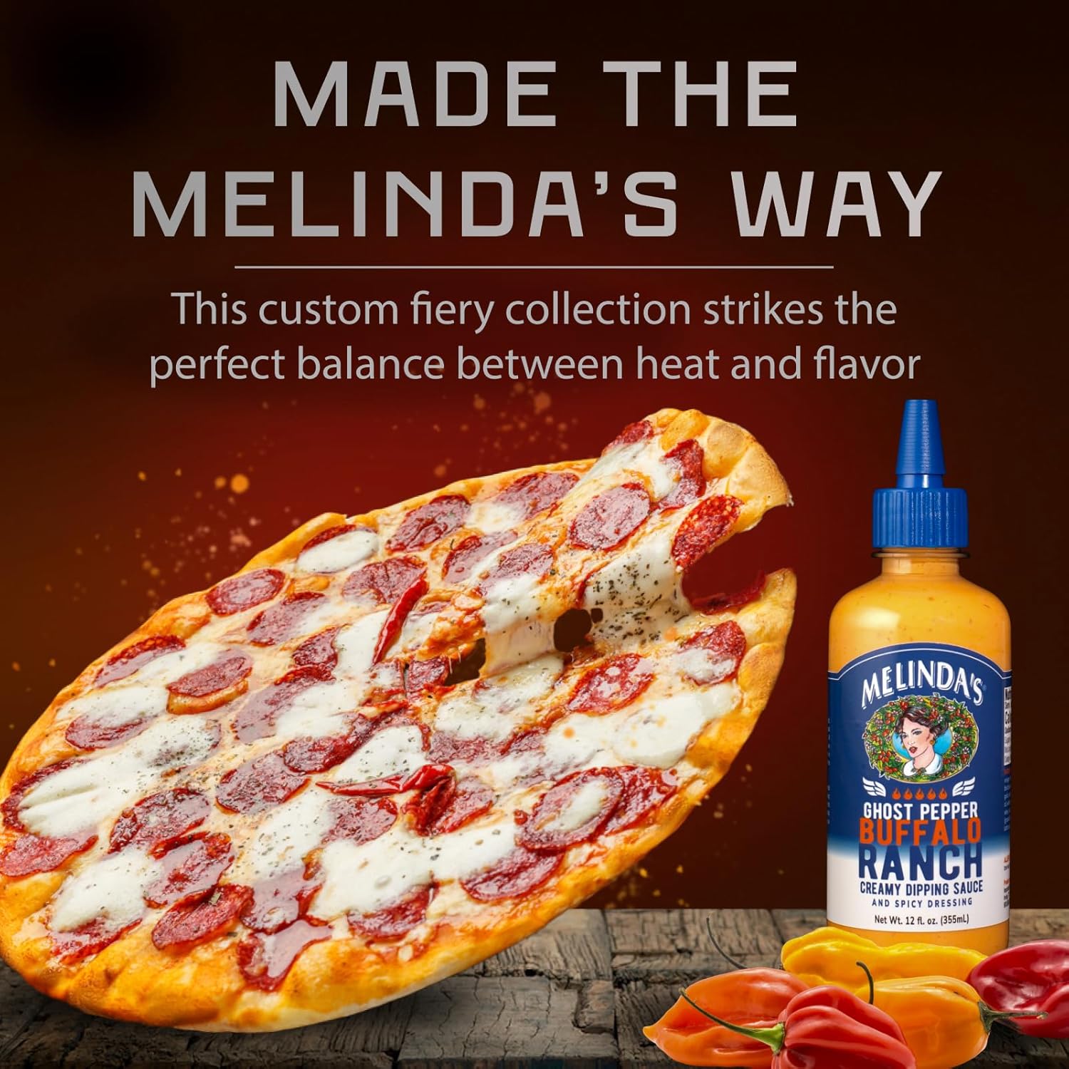 Melinda’s Fiery Pizza Collection - 6 Pack (70 Oz) - Pizza Hot Sauce Gift Set, Ghost Hot Honey, Ghost Black Truffle, Buffalo Ranch & More - Gluten Free, Keto