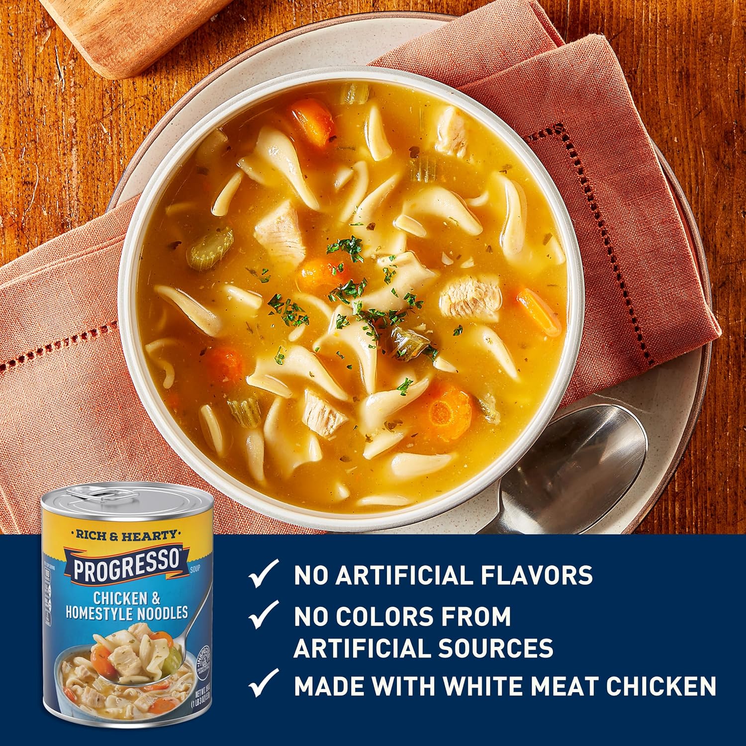 Progresso Rich and Hearty, Chicken and Homestyle Noodles Canned Soup, 19 oz (Pack of 12)