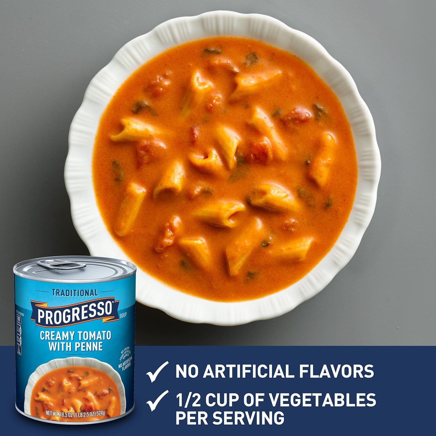 Progresso Traditional, Creamy Tomato with Penne Canned Soup, 18.5 oz (Pack of 12)