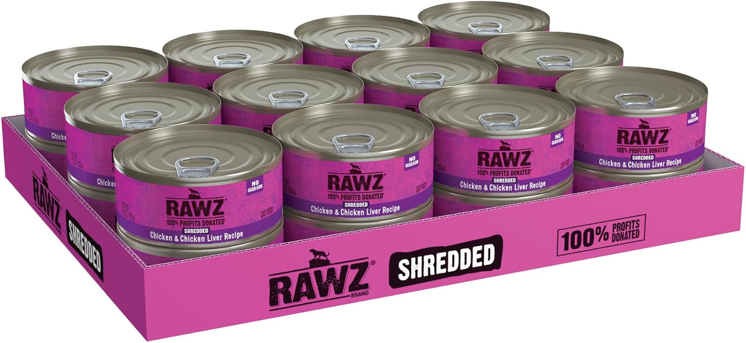 Rawz Natural Premium Shredded Canned Cat Wet Food - Made with Real Meat Ingredients No BPA or Gums - 5.5oz Cans 24 Count (Chicken & Chicken Liver)