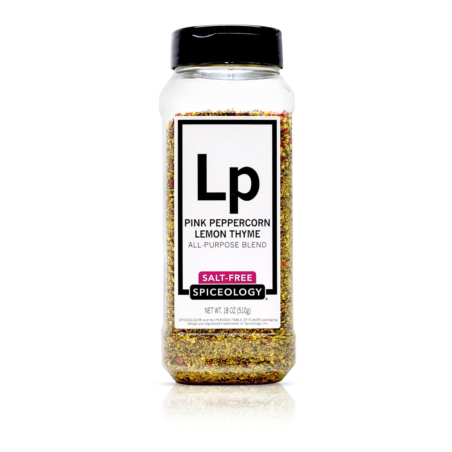 Spiceology - Pink Peppercorn Lemon Thyme All-Purpose Seasoning Blend (Salt-Free) - Lemon Pepper Spice Rub - Use On: Chicken, Salmon, Shrimp, Potatoes, Butter, Vegetables, or Salad Dressing - 18 oz