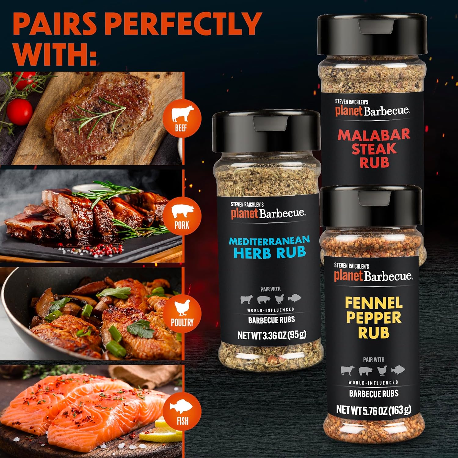 Steven Raichlen's Planet Barbecue Gourmet BBQ Rubs & Spices Gift Box 6 Pack- Grill Seasonings Set with Worldwide Flavors- Great Grilling Gift for Men