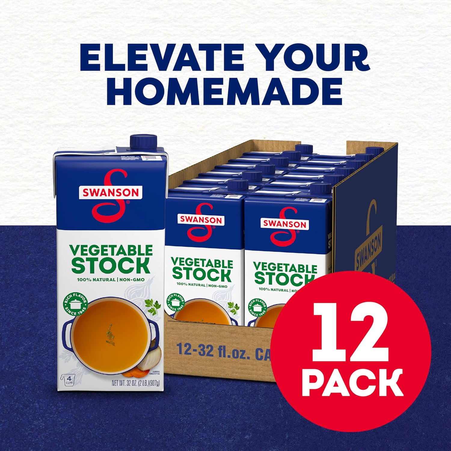 Swanson 100% Natural, Gluten-Free Vegetable Stock, 32 Oz Carton (Pack of 12)