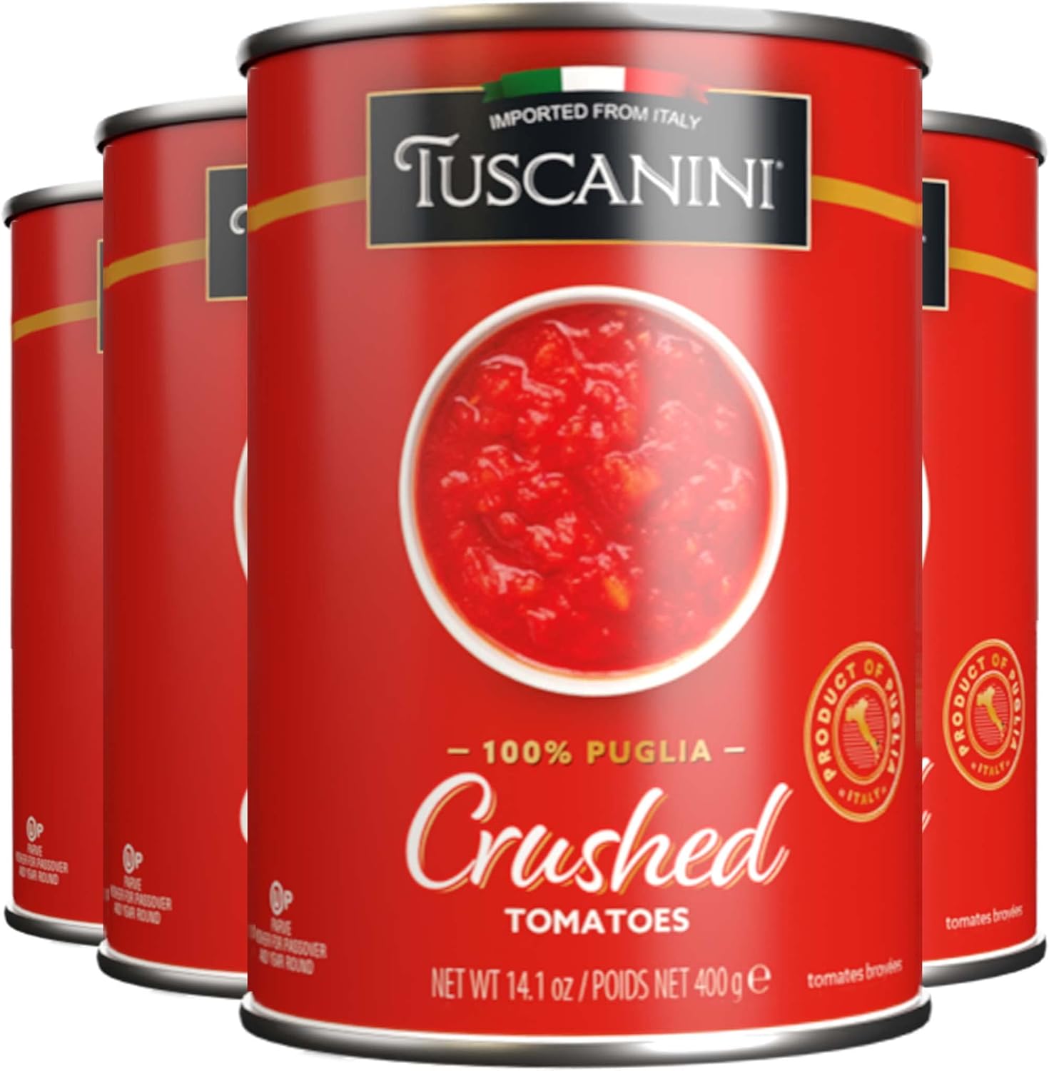 Tuscanini Crushed Tomatoes 14.1oz (4 Pack) | No Salt Added | Grown in Puglia Italy | Fine Tasting | Low Sodium | Great In Pasta Dishes | BPA Free Lined Can | Kosher (Including Passover)