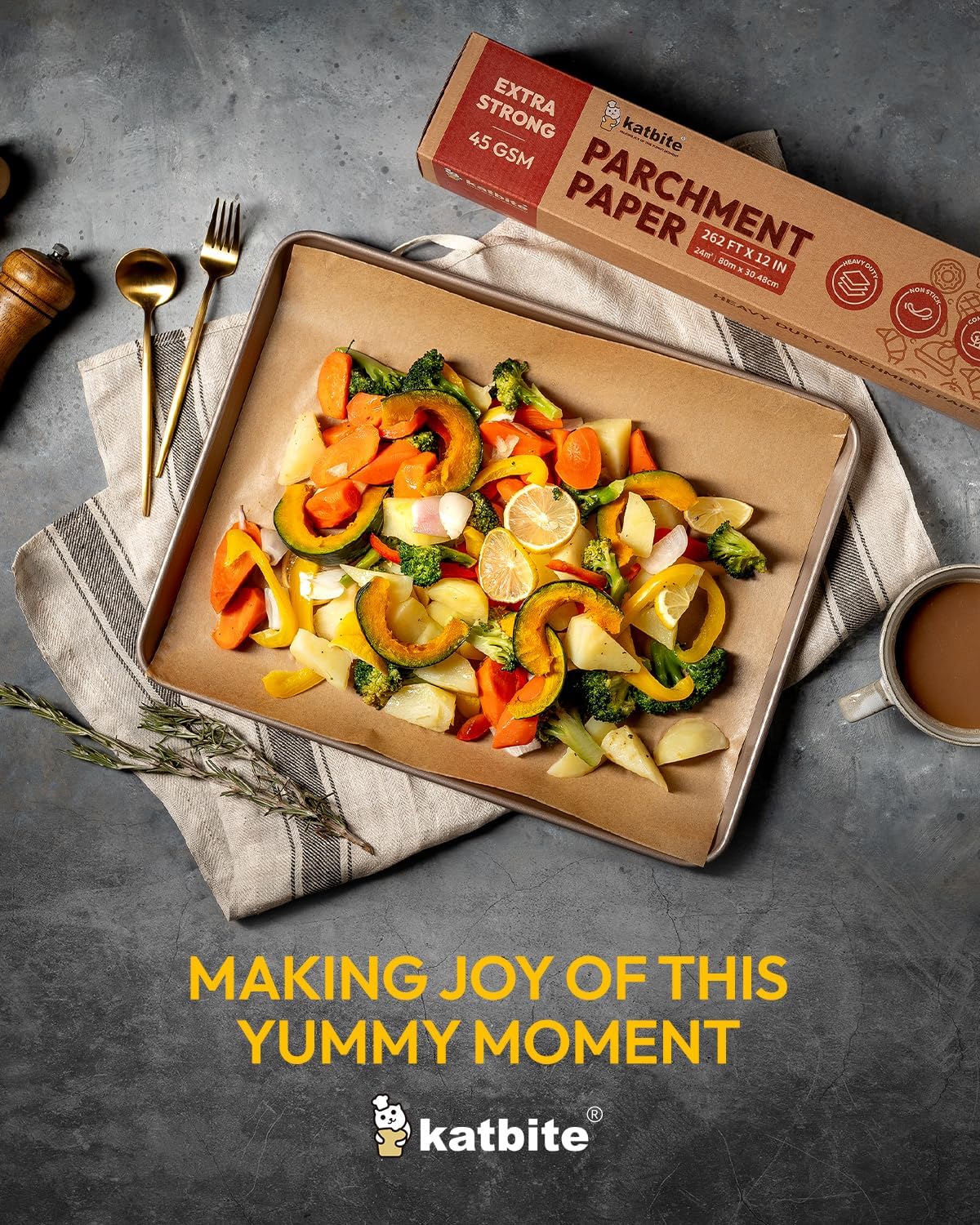 Unbleached Parchment Paper Roll for Baking 12in x 262ft, 260 Sq.Ft, Heavy Duty & Non-stick Baking Paper with Slide Cutter, Brown Parchment Paper for Cooking, Air Fryer, Steaming, Bread