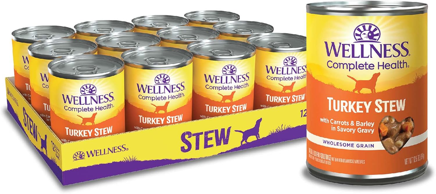 Wellness Complete Health Thick & Chunky Natural Canned Wet Dog Food, Turkey Stew, 12.5-Ounce Can (Pack of 12)