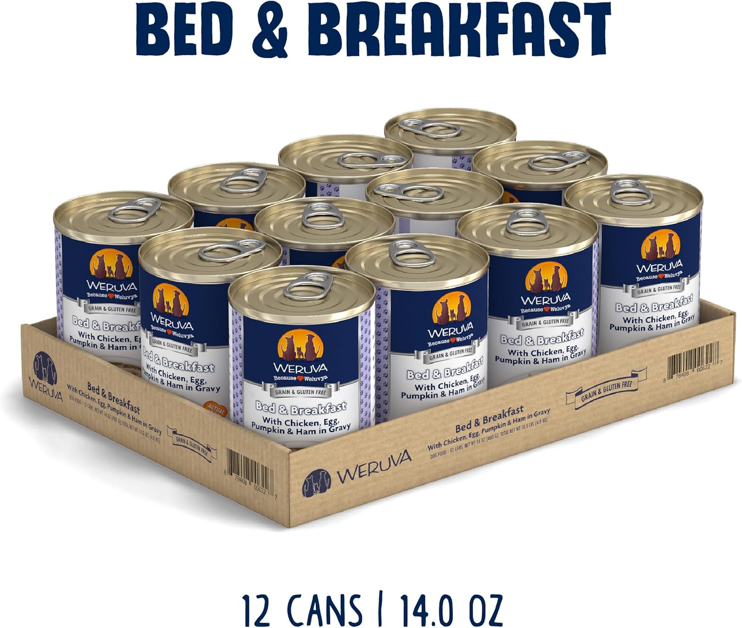 Weruva Classic Dog Food, Bed & Breakfast with Chicken, Egg, Pumpkin & Ham in Gravy, 14oz Can (Pack of 12)